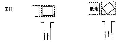 さてこの「直角による反射とその追放」ということが、現代の都市環境のデザインの上にどう関連してくるのだろうか。それは先に述べた安アパートや駐車場などを実際に見てみるとよくわかる。実はそのコンクリートの閉塞感を作り出す元凶が多分にこの点に起因しているのである。こういう場所というのはしばしば直角の隅の部分を実に無神経にむき出しのまま放置しているのであり、駐車場ができる前の空き地の状態にはこうした白いコンクリート壁の直角部分が存在しなかった。どうやらこのために、面積は同じでも空き地と駐車場の閉塞感の違いが生まれるものと見られる。