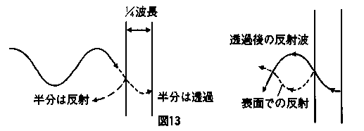 さて波の波長という概念が導入できたのだから、ここでその他の応用をいろいろと考えてみよう。まず先ほど紹介した「電波吸収塗料」つまり干渉による吸収の概念の応用についてである。このステルス技術では、波を半分だけ反射してその位相を半波長だけずらして重ねてやるというのが基本原理だったわけだが、ではわれわれの場合これに相当する材料を探すとすれば何だろうか。